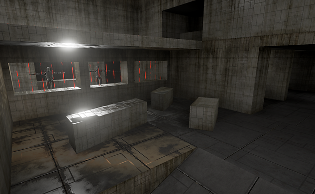 I want to give players choice to either have a fire fight at here or they could flank the enemies from behind. However, when the enemies are searching for the player they scan the player’s pelvis. Thus, when I placed the enemies behind the window they could not see the player. To solve this problem I add a small platform for them to stand on.